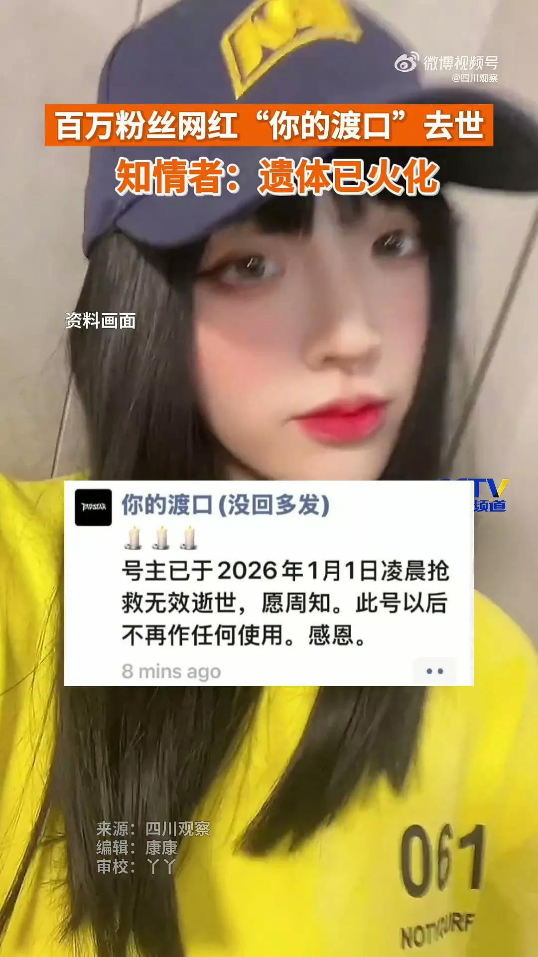 潮流圈震撼弹!拥有百万粉丝、曾被封为“球鞋女神”的潮流网红“你的渡口”(本名张纯,暱称口子姐),12日惊传已于元旦凌晨抢救无效逝世,终年29岁。家属随后向媒体证实噩耗,透露遗体已在上海火化,消息一出让大批粉丝心碎不已。