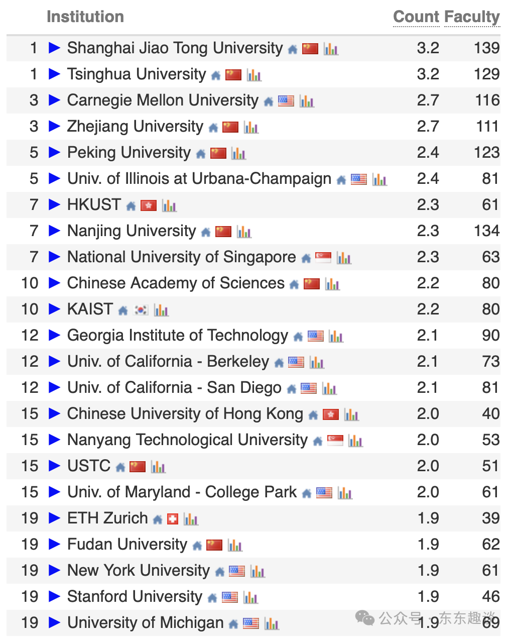 在软科该领域世界十强排名中,清华大学排名第二,浙大排名第四;在国内十强中,没有南大的名字。正常说各学科排名,顶会论文都是核心指标,为何差距如此之大。