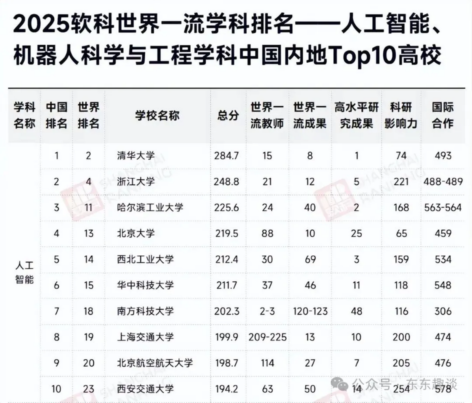 在国内也没有浙江大学、清华大学等校强;这个从2025年11月软科发布人工智能世界与中国高校排名就可以看出端倪。