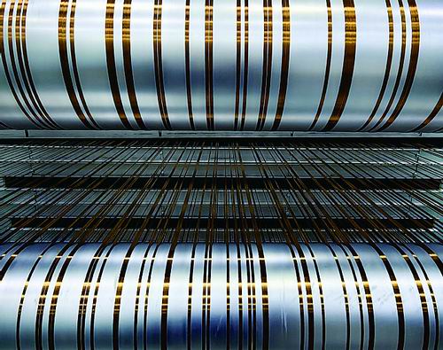 如今,在工厂车间,《中国科学报》记者看到,超细的白丝从有几千个微孔的金属板上被均匀挤出,像下饸饹面一样,进入水里,经过漂洗、刷油后,被牵伸、卷绕;之后,白色丝束在自动化流水线上,逐渐由乳白色、金黄色、深褐色、棕黑色,一步步变成有轻微金属质感的黑丝——T1000级碳纤维。