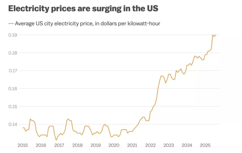 美国各地兴建的数据中心正在推高居民用电价格