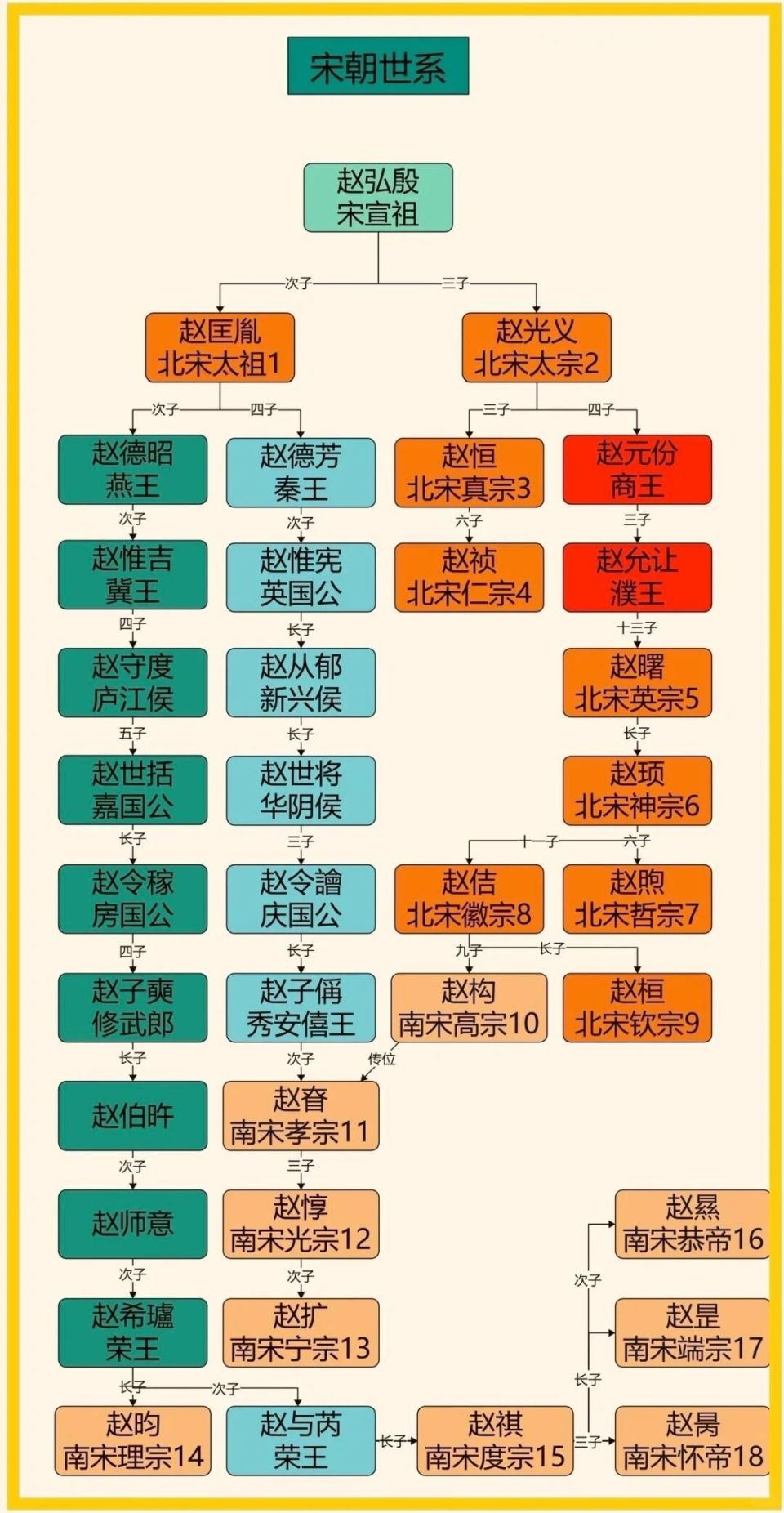 下图是宋朝皇帝世系明细图,先睹为快