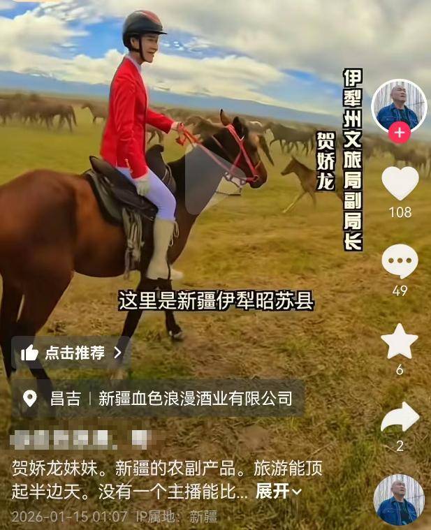 翻看这位好友的账号,他之前曾多次发布有关贺娇龙的动态,1月15日,他发布的视频中,贺娇龙所骑的马,就是她出事时骑的马。