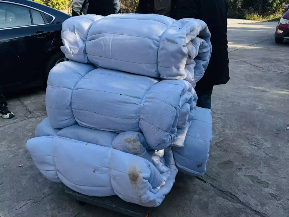 铺垫在货车底部,防止脐橙冻坏、碰撞的棉被。南方周末记者贾梦雅|摄