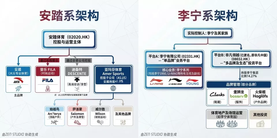 安踏的高估值,很大程度源于其多品牌矩阵的持续发力:迪桑特(Descente)、可隆(Kolon)及亚玛芬体育运营的始祖鸟(ARC'TERYX)、萨洛蒙(Salomon)等高端户外运动品牌,正在持续贡献增量。