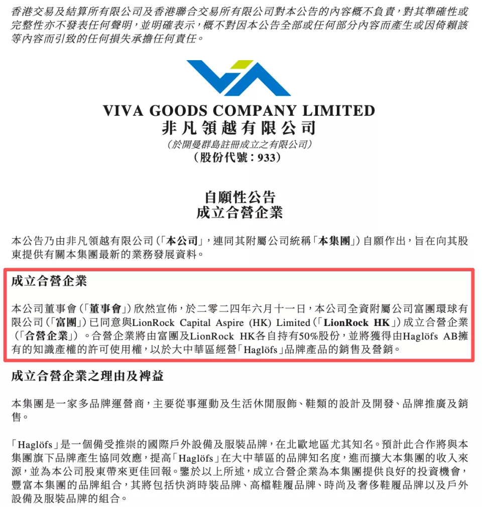 2023年,莱恩资本从亚瑟士手中收购火柴棍100%股权。2024年6月,港股上市公司非凡领越发布公告,旗下全资附属公司富团环球有限公司与莱恩资本将成立合营企业,各持50%股份,获得Haglöfs独家运营权。