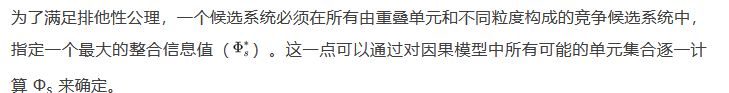 一旦在一个因果模型中确定了整合信息的最大值,属于该复合体的所有单元便会被排除在其他复合体的参与之外。随后,对系统中剩余的单元递归地重复复合体的搜索过程,直到识别出所有彼此不重叠的复合体为止。
