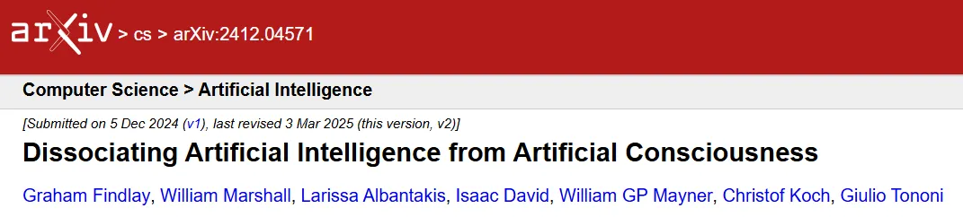 近十年来,人工智能在语言、推理与决策等方面取得了显著进展,使“机器是否可能拥有意识”这一长期属于哲学讨论的问题,逐渐转化为一个具有现实意义的理论与伦理议题。围绕这一问题,这篇Findlay、Marshall 等人与 Koch、Tononi 合作的论文提出了一个明确而反直觉的主张:即便在功能上与人类完全等价,高度智能的人工系统也未必具有意识,人工智能与人工意识在原则上可以被区分。