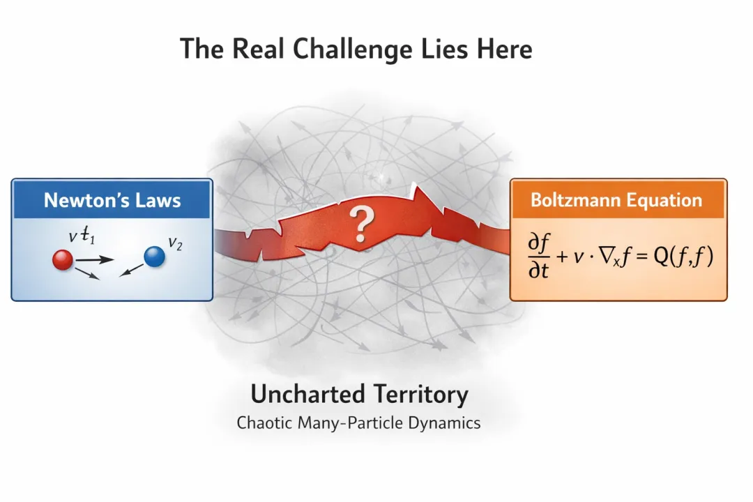 于是,一个在 1900 年被提出、在 1975 年被部分触及、又在半个世纪里被反复宣判“可能做不到”的问题,终于在数学上被完整贯通。牛顿的确定性世界,在长时间、无限粒子、零直径的极限下,严格收敛到玻尔兹曼的统计世界。