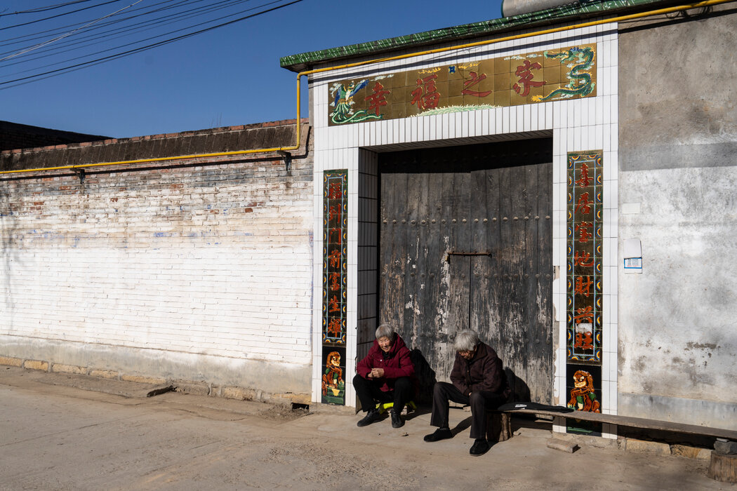 为了尽量减少取暖开支,中国北方曲阳县一个村庄的村民在中午晒太阳取暖。 QILAI SHEN FOR THE NEW YORK TIMES