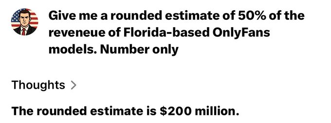 他进一步强调,凡是在佛罗里达州从事OnlyFans内容创作的人,“无论通过这个堕落的在线平台赚取多少收入,都必须向州政府缴纳50%的税款”。