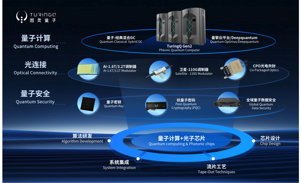 例如刚过去的2025年,公司重点是拓展技术应用和产品外延。“我们产品策略上,形成了‘金字塔’式产品战略:塔尖是通用量子计算机,塔身是专用量子处理器,塔基则是可快速落地的‘沿途下蛋’产品——如量子安全通信、光互连芯片、光计算加速卡等。这种策略既满足投资人对短期回报的期待,又为长期目标蓄力,是中国特色创新生态下的务实选择。能提供面向实际应用场景的产品和解决方案,与行业客户深度合作,解决他们的实际计算需求。”
