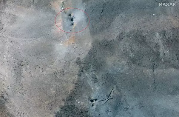 ▼去年6月伊朗福尔多核设施遭美军轰炸后,清晰可见重创留下的凹洞。