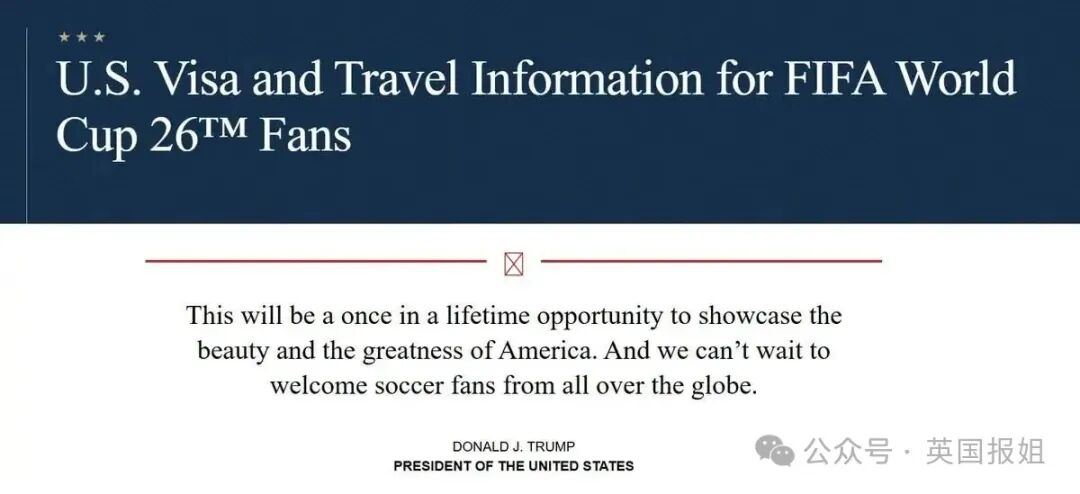 ( 这将是一次千载难逢的机会,向世人展示美国的美丽与伟大。我们热切期盼着来自世界各地的足球迷们的到来。BY川普)