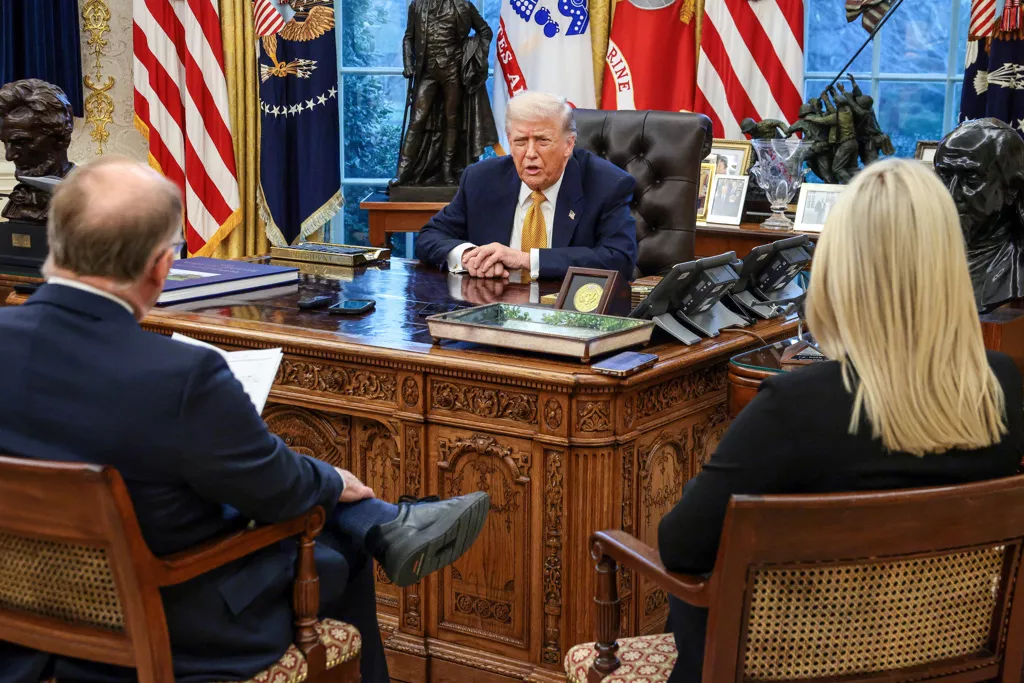 路透社周三(14日)在白宫椭圆形办公室访问美国总统川普,为时30分钟。川普发表对于朗政权情势的看法,言明俄乌和平绊脚石是基辅而非莫斯科,暂无打算辞退联准会主席鲍尔,力挺移民局执法,还谈了期中选举。路透社在访谈结束后列出5大重点: