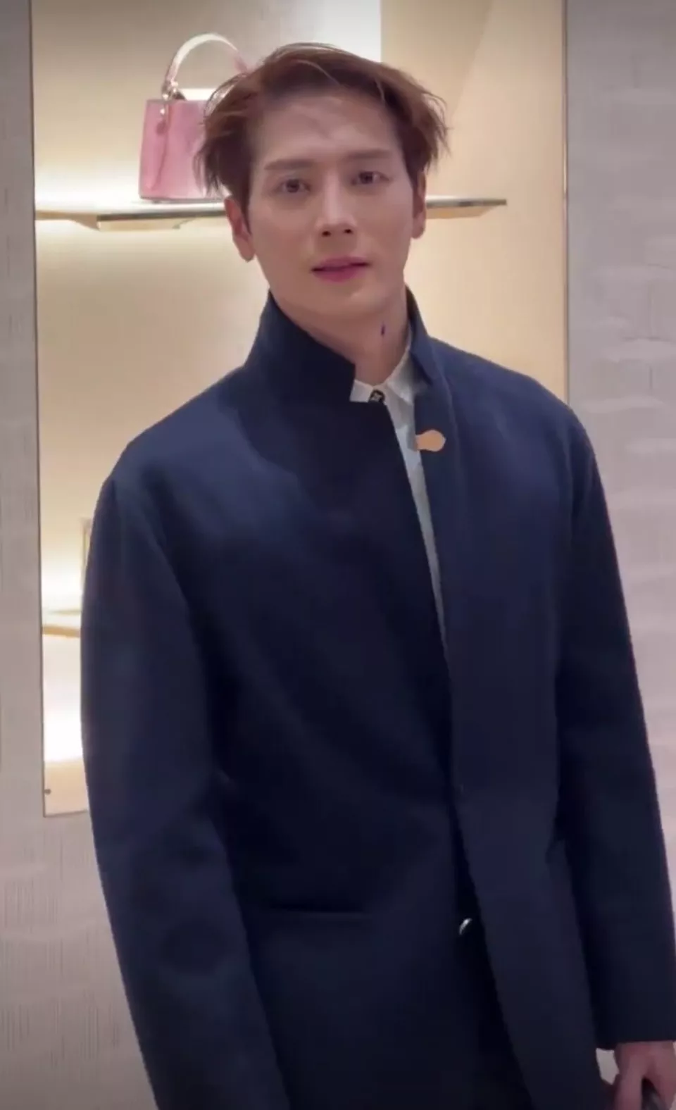 上半身的深蓝色外套,明明是偏周正的款式,但穿在他的身上,却是儒雅绅士中带着几分个性。