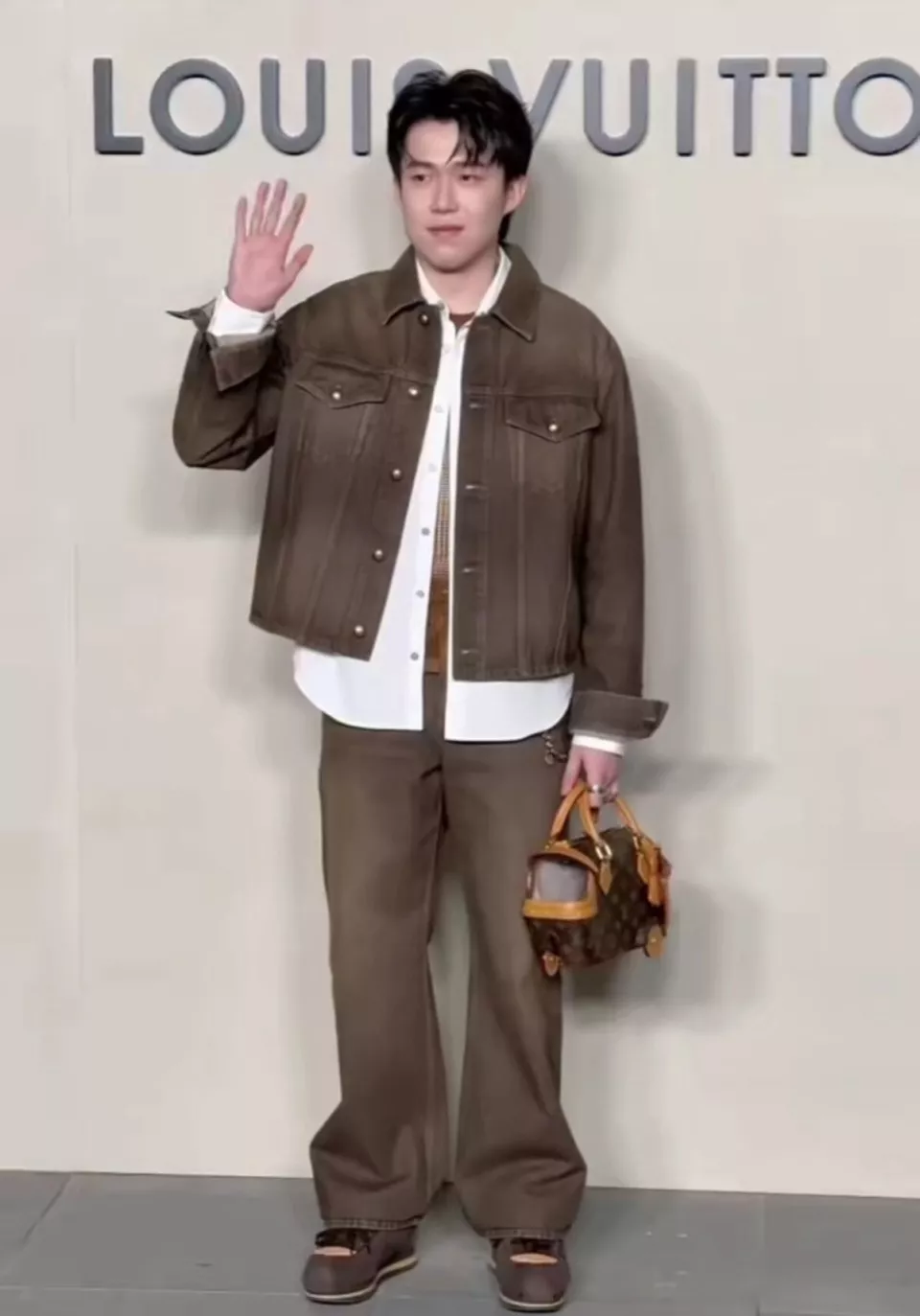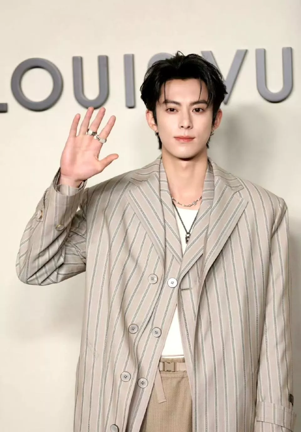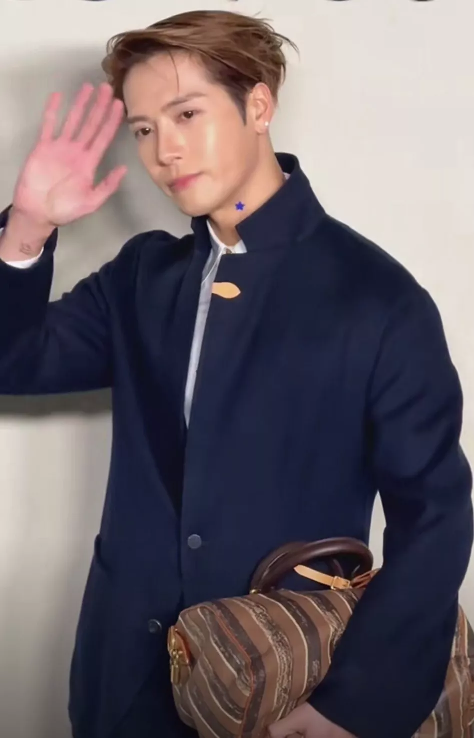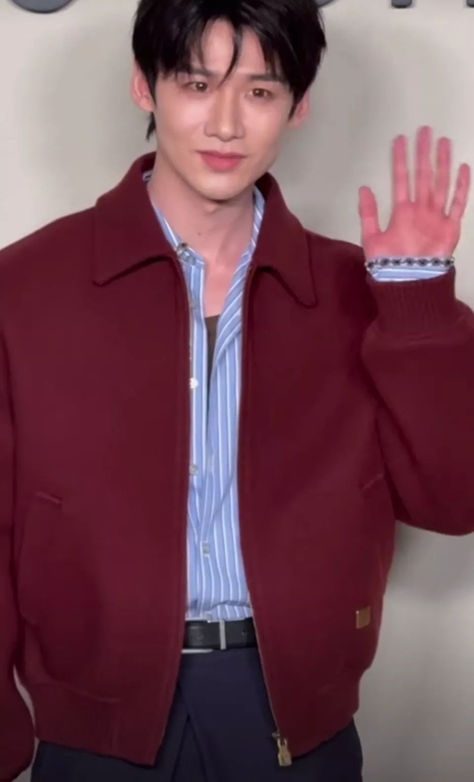同样是一个抬手打招呼的动作,王鹤棣又酷又有范儿,更像是精心设计好的pose,随性又有气场。