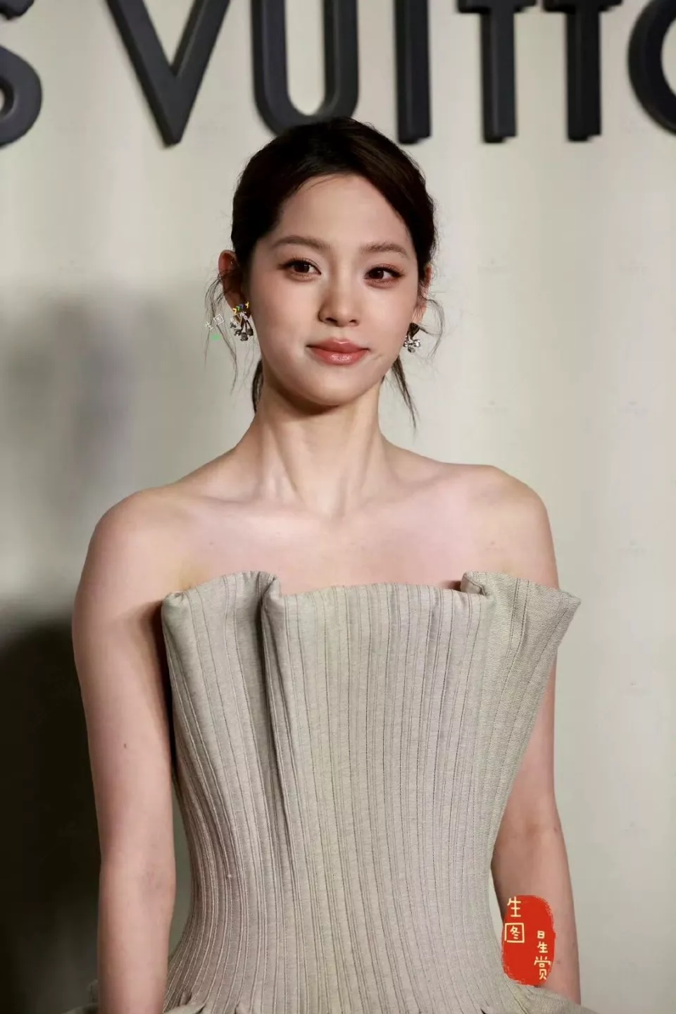 软乎乎的淡色系,显得欧阳娜娜格外温柔,但设计感的服饰配上偏分盘法,大大方方的秀出脖颈,又是高级感满满。