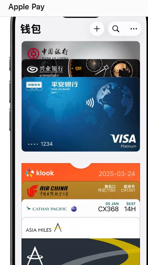 据介绍,持有中国工商银行、中国银行、中国农业银行、交通银行、招商银行、中信银行、平安银行、兴业银行发行的Visa信用卡,及中信银行发行的Visa借记卡的顾客,将卡片添加到Apple钱包app后即可使用 Apple Pay 进行跨境支付。上述银行已和中国银联共同为Apple Pay跨境支付提供支持。