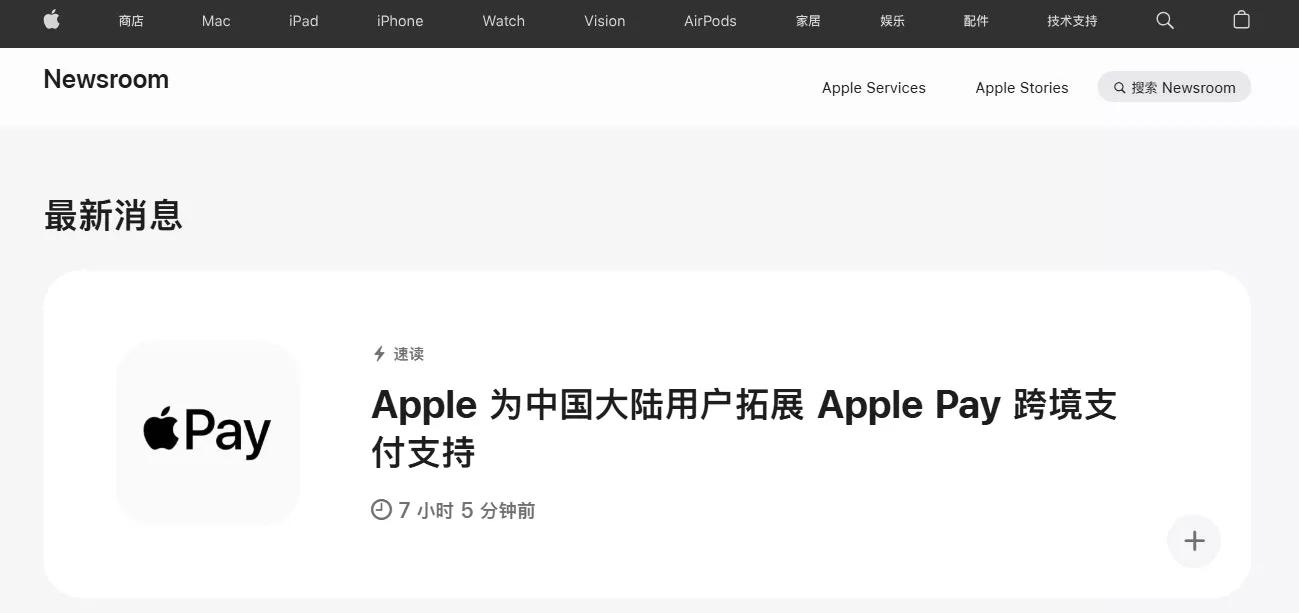 Apple Pay拓展跨境支付支持。(Apple)