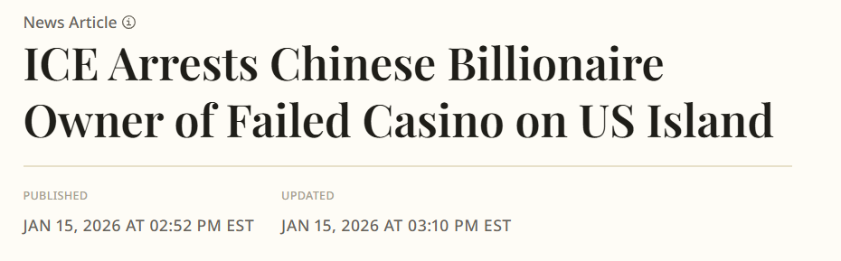 美国移民与海关执法局(ICE)已拘捕中国华裔女子崔丽杰(Cui Lijie,音译)。她被认为是北马里亚纳群岛塞班岛(Saipan)一家豪华赌场背后的关键人物。