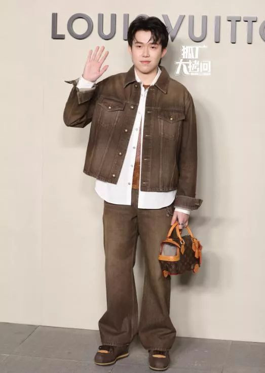 作为品牌大使,这次他全身以驼色套装为主,还是那么腼腆。