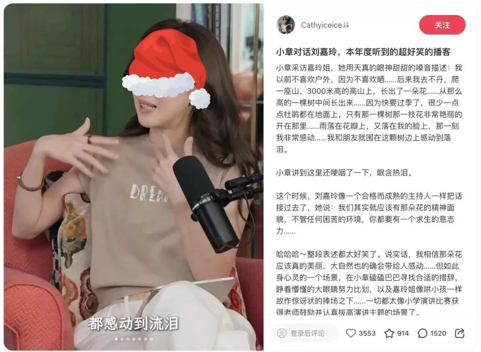 ▲有博主称,章泽天对话刘嘉玲是本年度听到的超好笑播客。