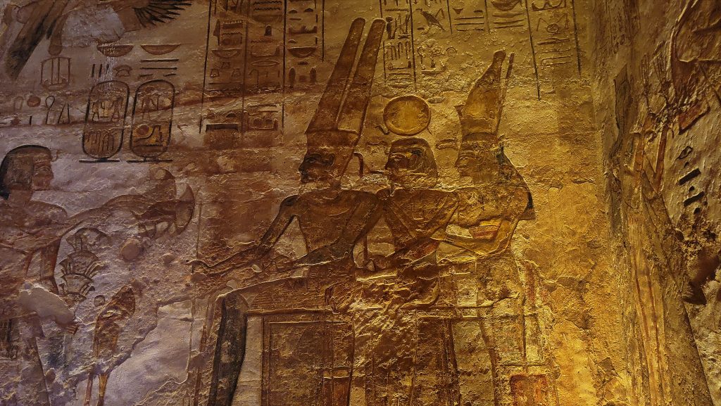 墙壁浮雕描绘了“卢克索圣三位一体”,包括太阳神阿蒙-拉、化身为孔苏(月神)的拉美西斯二世以及穆特(创世之母)。
