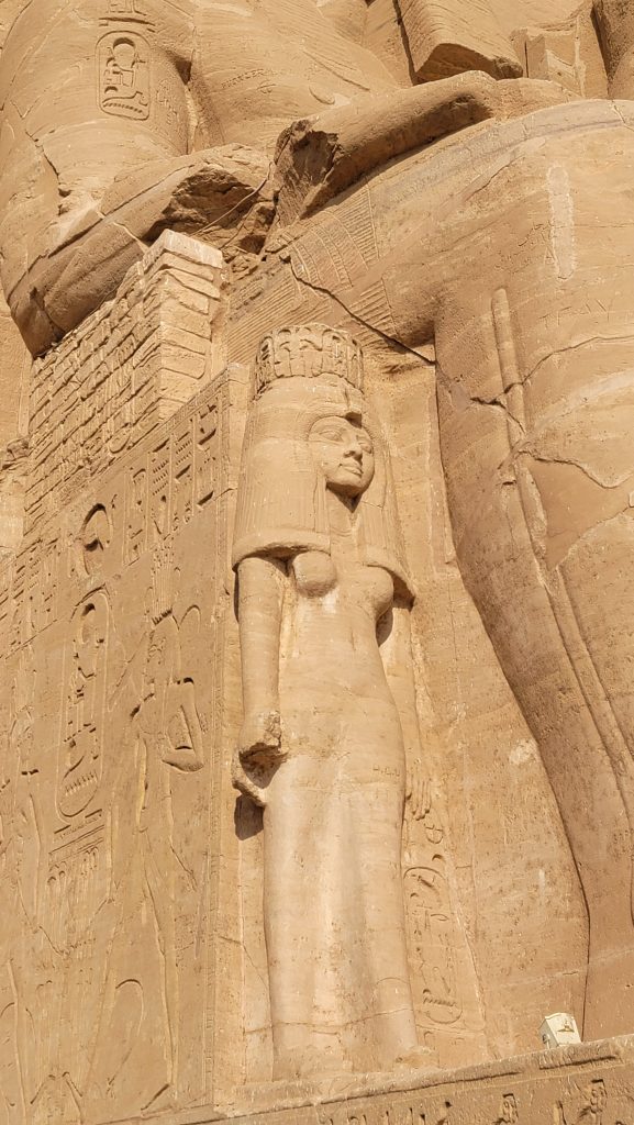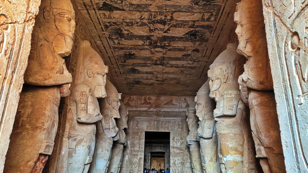 小神庙献给纳芙蒂蒂王后与女神哈索尔,立面六尊雕像中,王后与拉美西斯二世等高,极为罕见,彰显其尊贵地位。整体比例优雅,浮雕多描绘王后祭祀与神祇形象,氛围更为柔和而庄重。