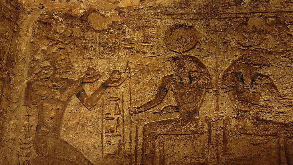 这幅浮雕描绘的是拉美西斯二世向神灵献祭的场景