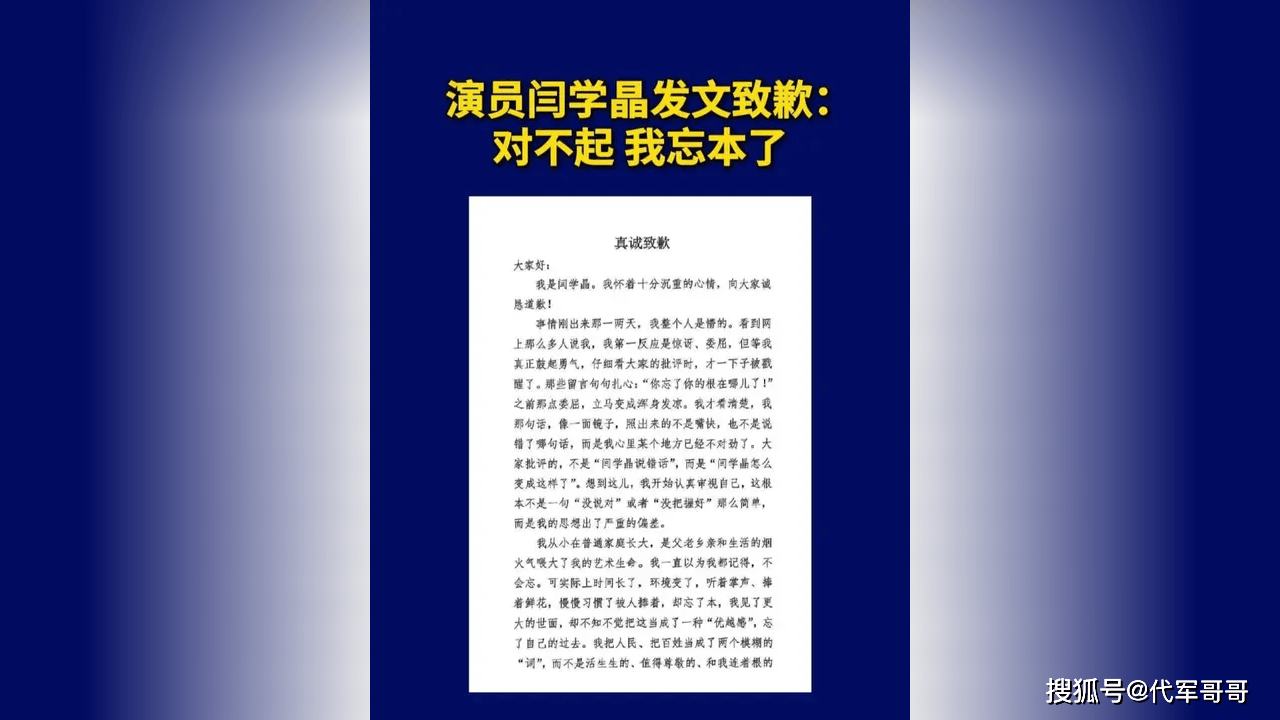 面对汹涌的舆论浪潮,闫学晶在 1 月 11 日晚做出了回应。她在朋友圈发布了一篇长长的致歉信,字里行间透露着懊悔与反思。在信中,她坦诚地承认自己因为长期处于被追捧、被赞扬的环境中,逐渐产生了优越感,从而忘却了自己的出身与根本。她深刻认识到自己的思想出现了严重的偏差,将人民和百姓视为模糊的概念,而忽视了他们与自己的紧密联系。这番道歉,从某种程度上显示出她对自己错误的认知与反省。然而,这封致歉信并未平息大众的质疑,反而引发了更多的争议。