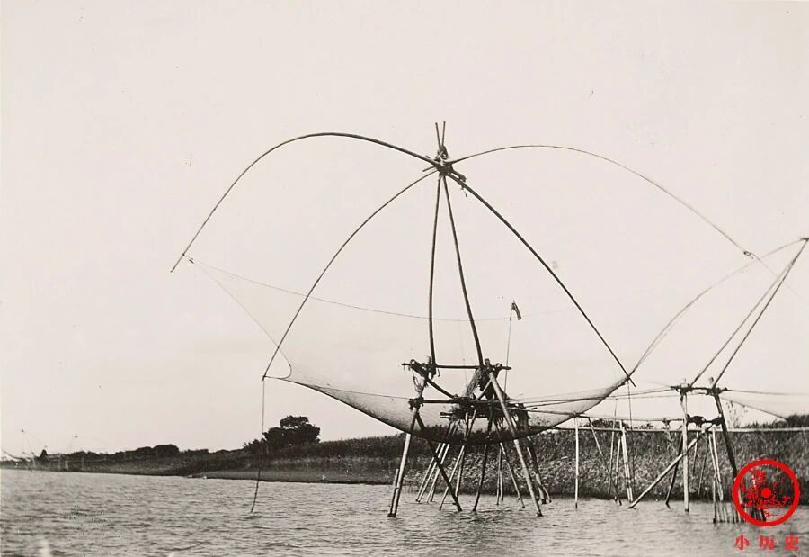 搬罾捕鱼就是将渔网的四个角吊起来,敷设到水中,等鱼虾游过渔网的上方迅速提起网具,渔获就在网中了。这种古老的捕鱼方式有超过2000年的历史,当前虽逐渐退出历史舞台,但在江南、西南等水域丰沛的地区,还可看到。