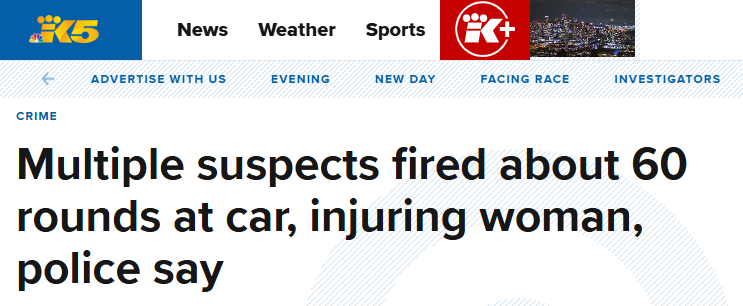 周三(14日)晚间,西雅图高点社区(High Point)发生一起枪击事件,一辆汽车遭约60发子弹扫射,导致一名女子受伤,目前尚无嫌疑人被捕。