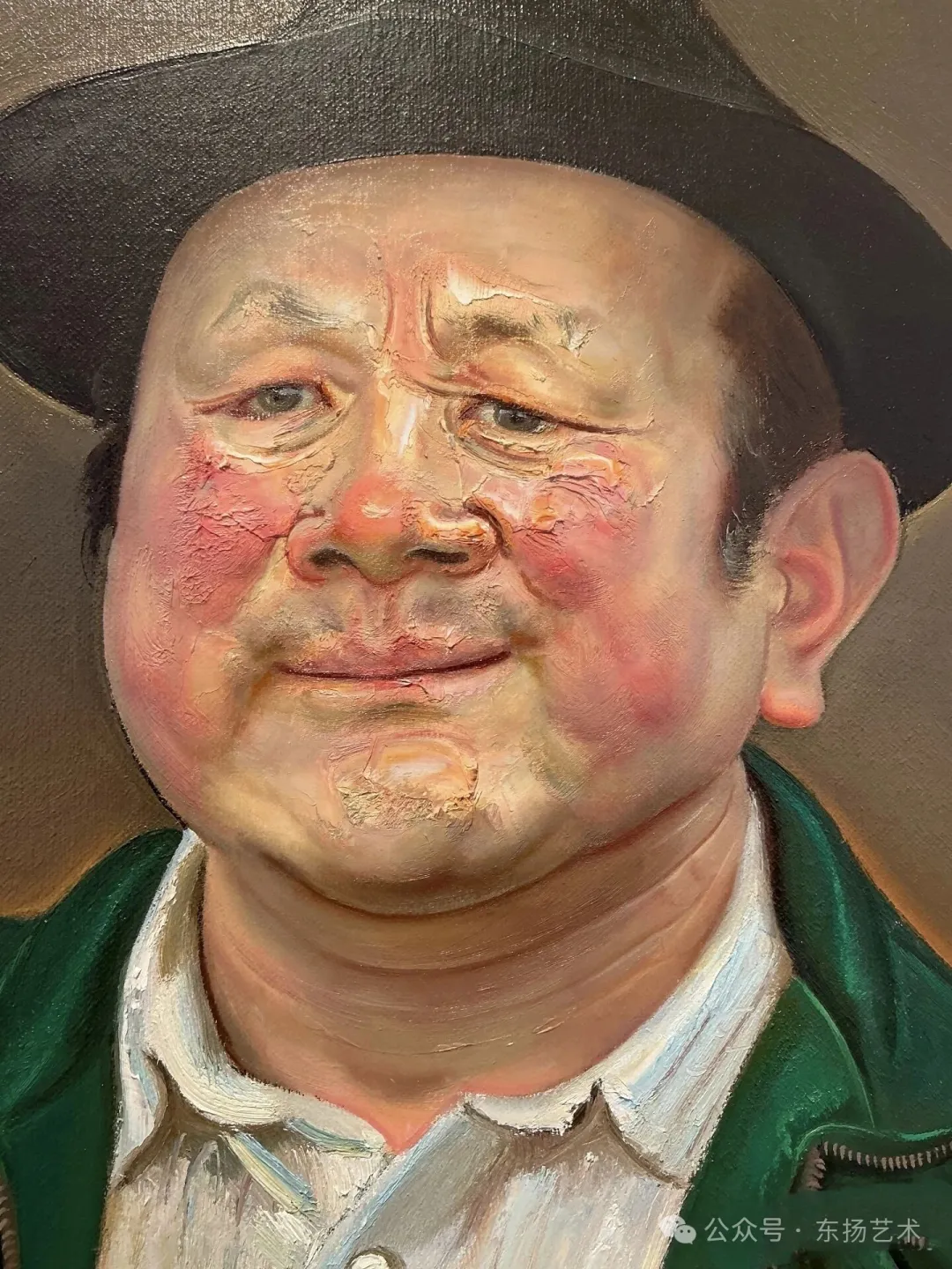 其作品色调厚重质朴,善用油画刀塑形,通过超近距离的观察与透视压缩,让人物的精神状态扑面而来——那些麻木的眼神、局促的姿态,无不承载着生活的沉重与生存的尴尬。