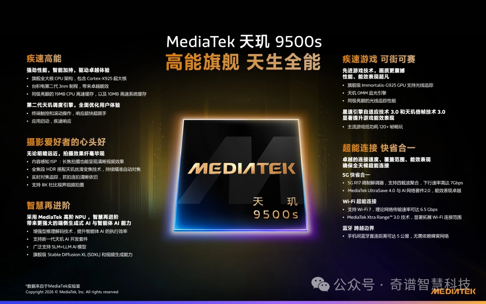 联发科发布3nm天玑9500s,定位移动旗舰奇谱科技