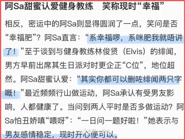 阿Sa霸气官宣新男友:删去“绯闻”二字钓了条娱
