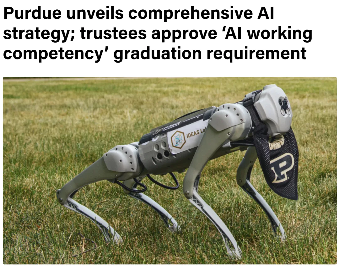 近日,美国老牌工科强校——普渡大学(Purdue University)正式宣布:要在本科毕业要求中新增一项名为 “AI 工作能力(AI working competency)” 的硬性指标,而这项尚在细化中的要求,将从 2026 年秋季入学的新生开始执行。
