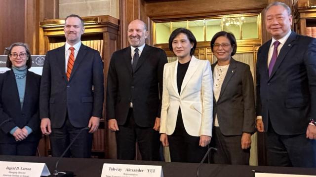 图像加注文字,台美关税谈判在美东时间1月15日结束。图左起为美国在台协会执行理事蓝莺、贸易代表葛里尔、商务部长卢特尼克,台湾行政院副院长郑丽君、政务委员杨珍妮、驻美代表俞大㵢。Article InformationAuthor,吕嘉鸿Role,BBC中文记者