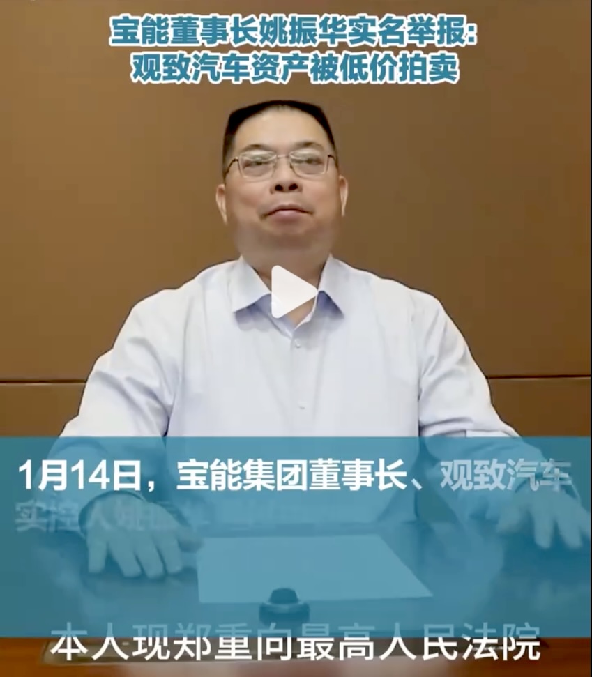 日前,一段视频在“中国宝能”微信公众号悄然上线。镜头里的姚振华,西装笔挺,语气克制,却字字带火。他没有谈情怀,没有谈梦想,而是直接点名:江苏常熟部分官员、经开区管委会、常熟市人民法院。理由只有一个——在观致汽车2.7亿元执行案中,存在“严重违法”和“恶意低价拍卖资产”的问题。