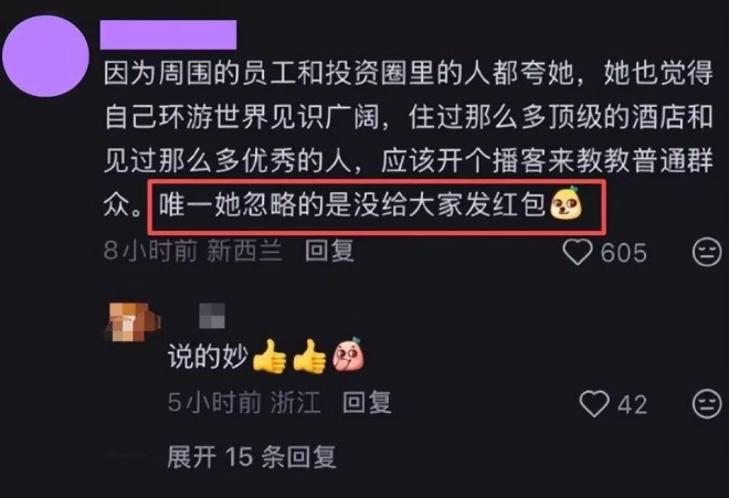 “她唯一忽略的是,没给大家发红包。”