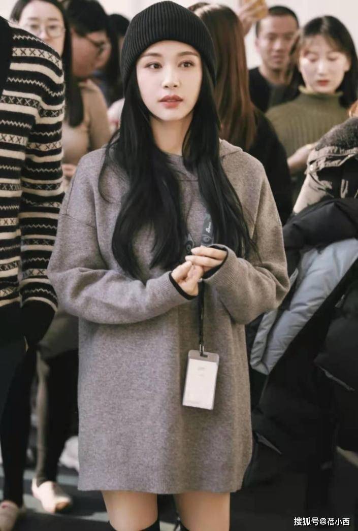 这款卫衣连衣裙的长度在大腿处,安全裤肯定是少不了的。我们可在一定程度上将其视作连衣裙,它版型宽松,别说腰间赘肉了,就是胯宽问题都能一并被遮住。穿卫衣连衣裙时,有人会搭紧身裤,毕竟上宽下紧这一搭配技巧屡试不爽。只是王子文没有这么做,她是光腿穿的。