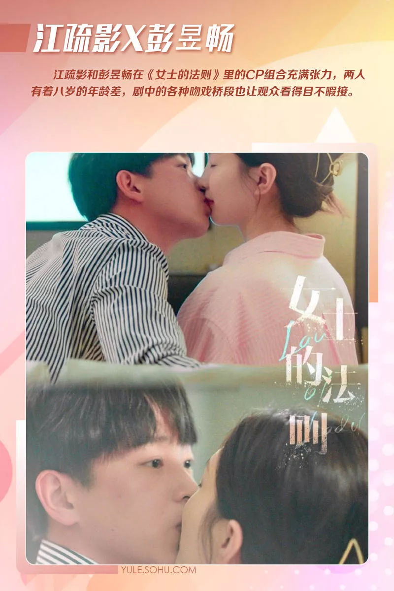 在电视剧《女士的法则》里,彭昱畅饰演的年下小狗和江疏影饰演的年上女主有着各种各样的吻戏,两人之间的一场浴室吻更是充满张力。