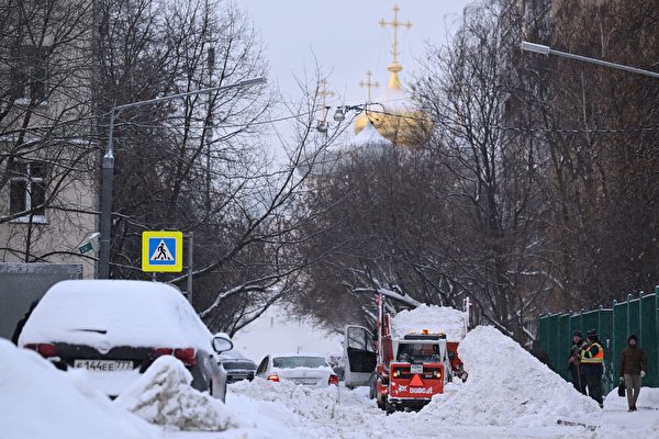 资料照片:大雪过后,莫斯科市政工人清理积雪。(Natalia Kolesnikova/AFP via Getty Images)