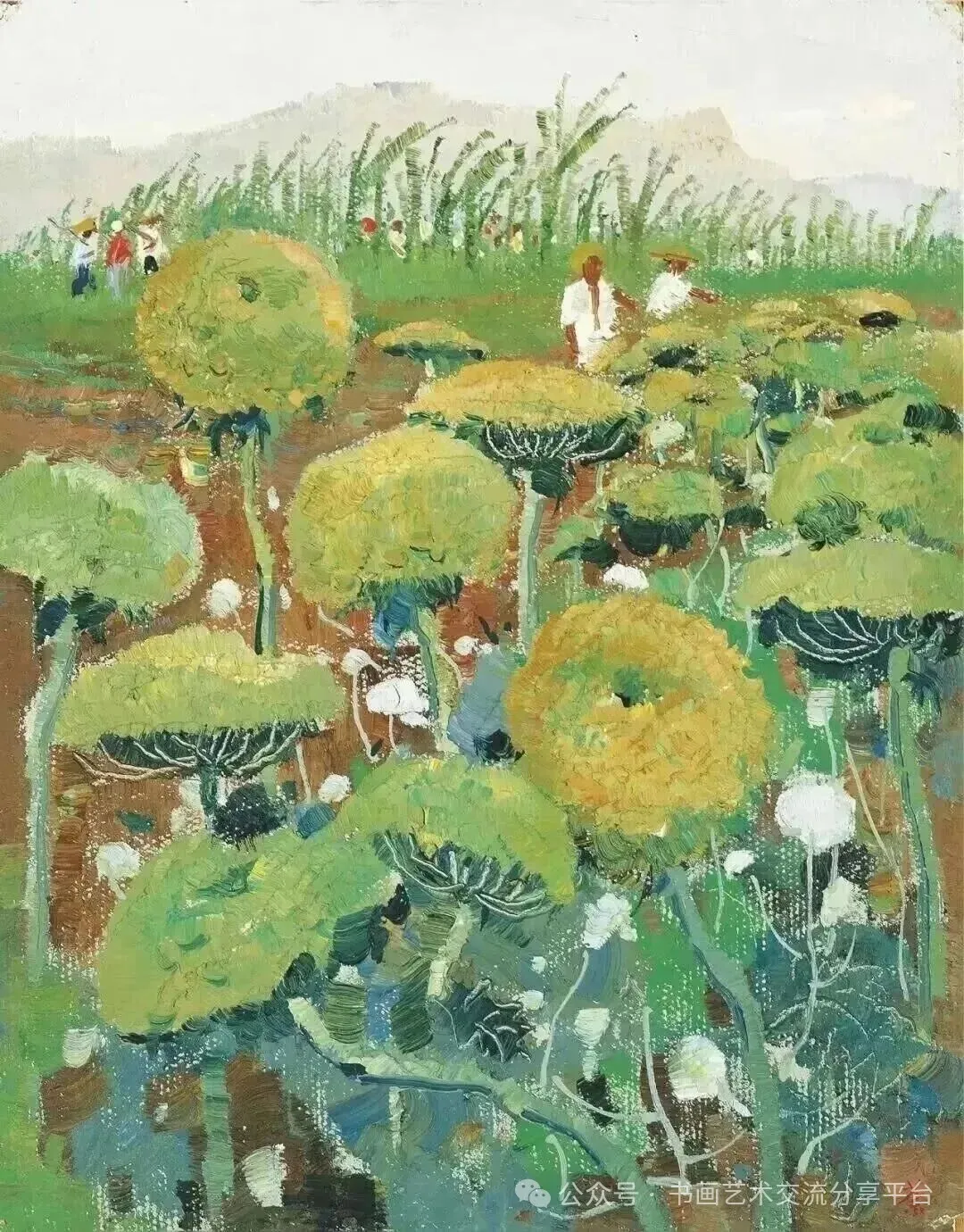 该作品是吴冠中在河北李村期间的创作,彼时他被戏称为“粪筐画家”,因借用老乡的粪筐代替油画架进行户外写生。这一时期他聚焦农村乡土题材,从胡萝卜花这类寻常农作物中挖掘自然之美,践行“油画民族化”的艺术理念。