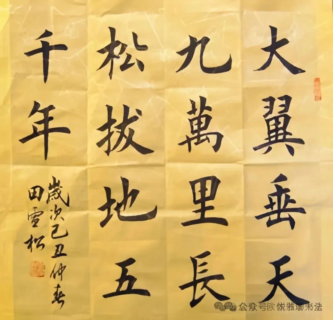 何为“田楷”? 即指当代两位书法名家田蕴章、田英章两兄弟(人们习惯上称他们两兄弟为”二田”)的楷书,他们在当代书坛的影响力和知名度很大,追随者众多,而田英章先生的儿子田雪松同样是田楷优秀的传承人。