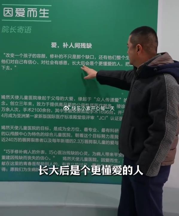 这家完成了11000多台唇腭裂手术,口碑极好的医院。内部的环境真的很好,医院内部随处可见的公益字眼,连走廊里也充满着爱意。