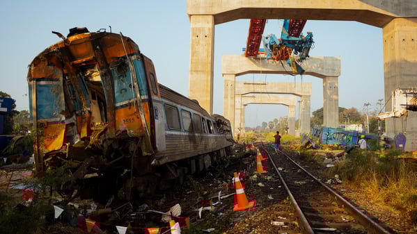 本月14日,在呵叻府(Nakhon Ratchasima)的一处由中国所支持且被视为泛亚铁路指标项目的高速铁路工地,发生一具巨型起重机突然倒塌事件,并直接砸中了下方行驶过的客运列车,而导致列车出轨且严重损毁。此起事故酿成车上将近200名乘客中,有多达32人不幸罹难。