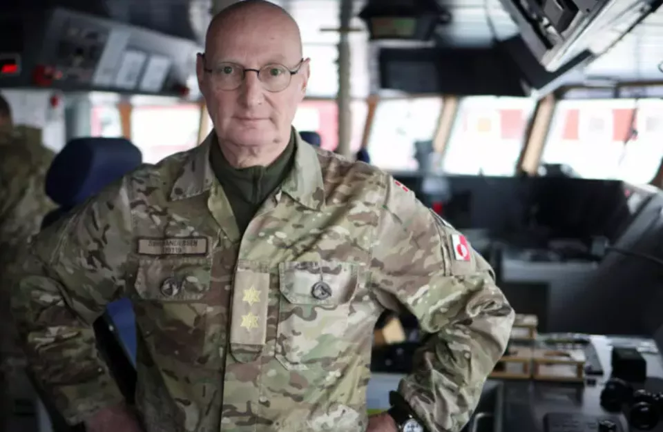 安诺森在努克的一艘丹麦军舰上接受路透社采访 图源:外媒