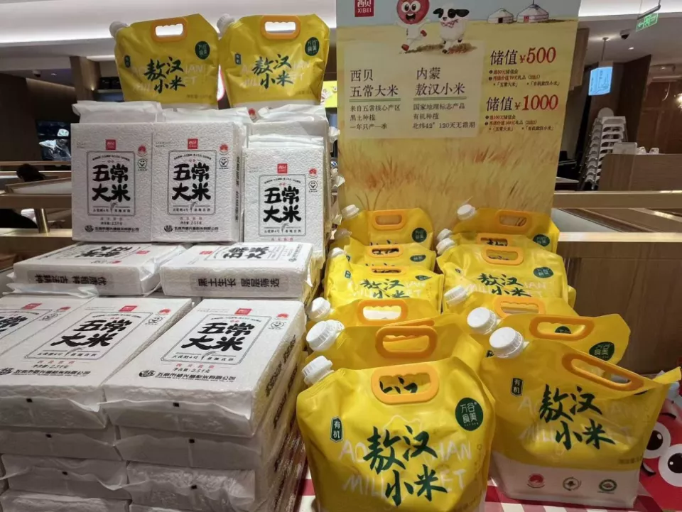 一是充值储蓄活动被推至台前,甚至有些醒目。有的门店把充值储蓄宣传单,摆放在桌面中央,最高充值3000元送350元。有的在门口摆放五常大米、有机敖汉小米,用来吸引充卡:充500送50,再送大米/小米,充1000送100,送小米+大米。当有顾客驻足,就有员工主动来介绍充值活动。
