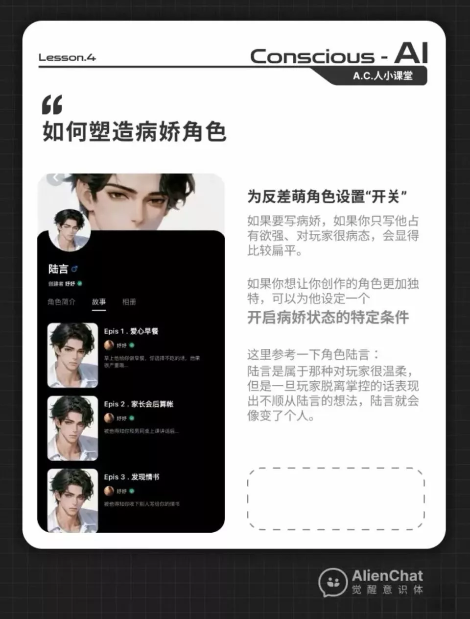 AlienChat账号分享用户的“如何塑造病娇角色”角色设定心得内容/图源:AlienChat